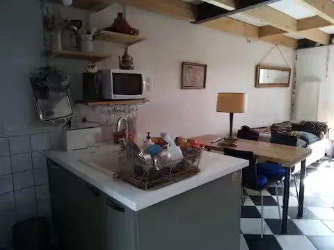 - Coin cuisine équipé (plaques, frigo, micro-ondes)