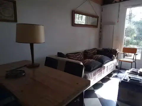 Charmante maisonnette pour 3 personnes, entourée de pins et de tranquillité. Terrasse ombragée et ambiance nature.