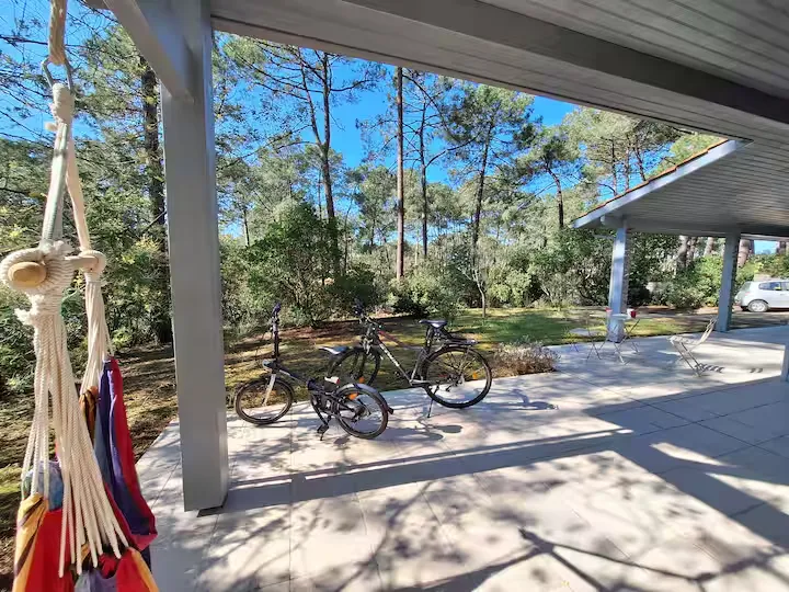 L’atout majeur de ce logement ? La piste cyclable qui passe directement devant le portail. En quelques coups de pédale, vous rejoignez la mythique plage Sud de Lacanau Océan, les commerces du centre-ville ou la forêt landaise. À pied, comptez seulement 12 minutes. C’est la liberté absolue.